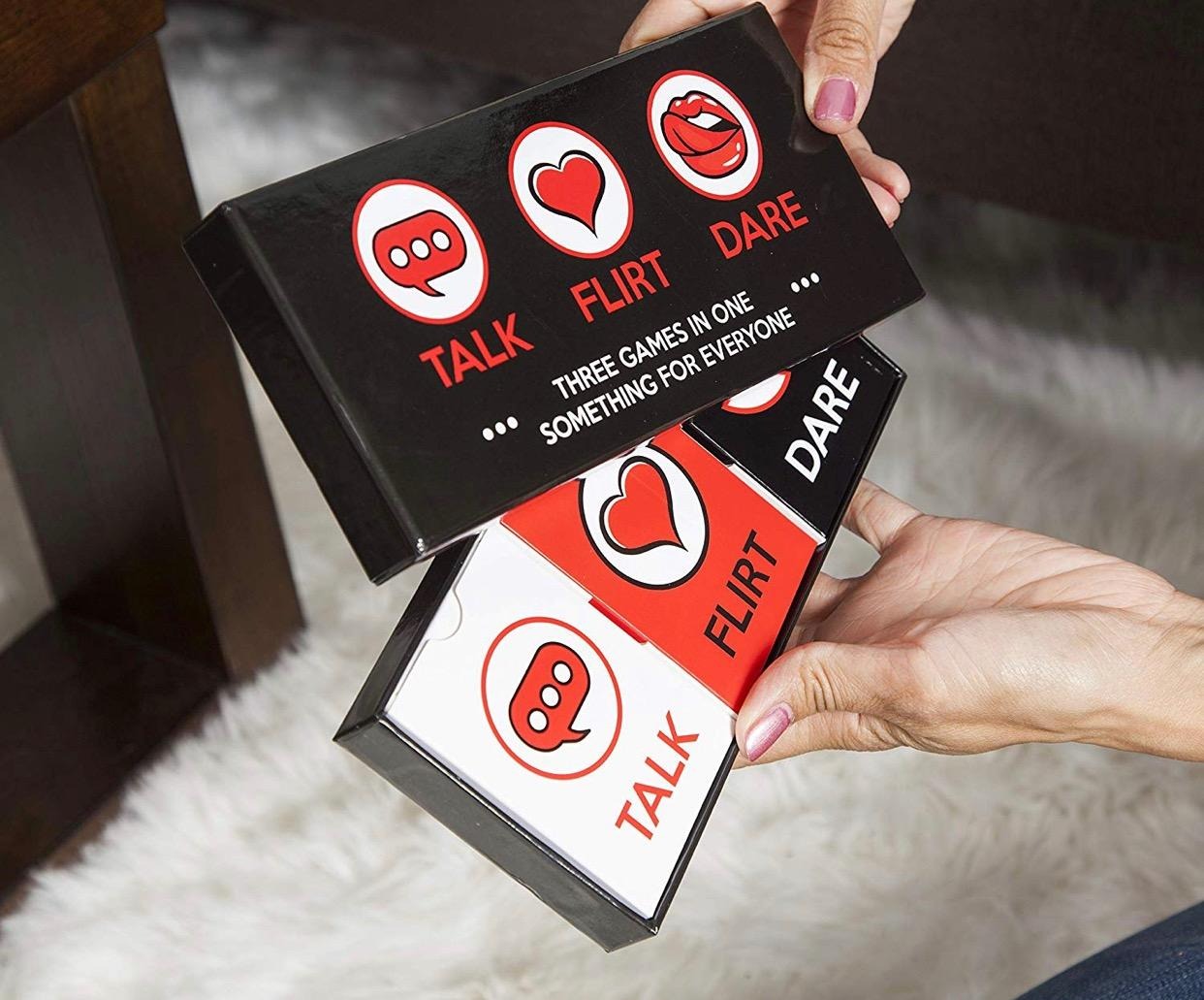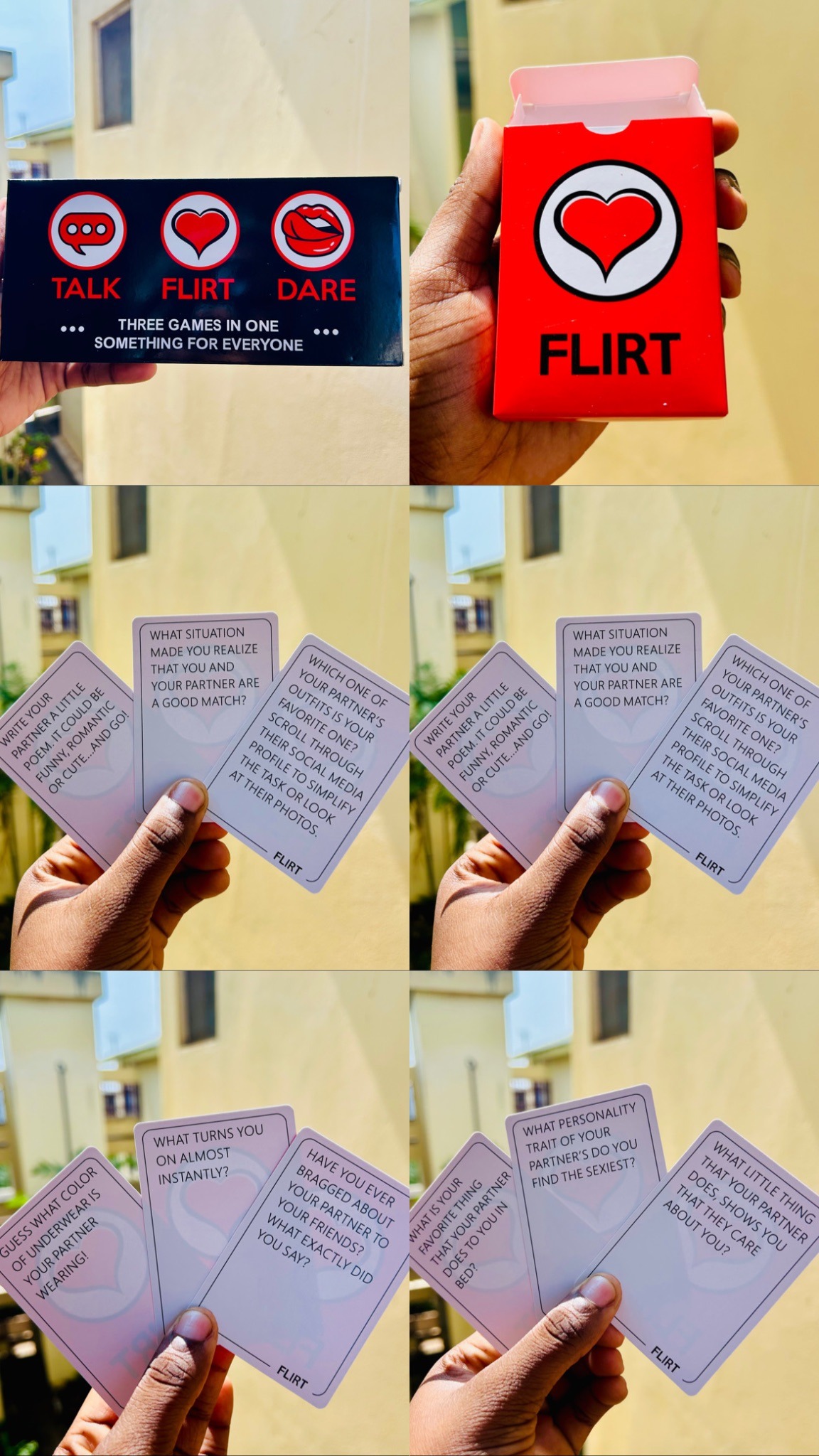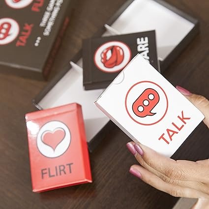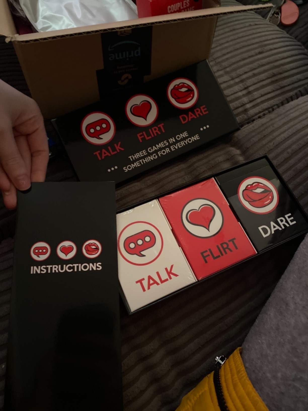 First of all, spent more than 30 min on my own smiling while reading them. Then read some of them with partner and to make it more fun each would reply to Qs what she/he considers that the other one might reply😂 Endless hours of fun. You dont have to do them all at once. Is too much. But fun to pop a card every once in a while. “Talk” ones are quite insightful. “Dare” ones…. You reallly have to be in the mood for them. “Flirt” ones are way too sweet. Fun, witty, entertaining, cute. Thank you